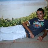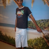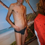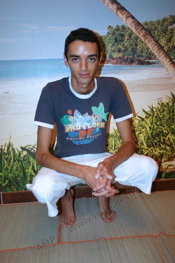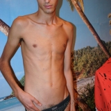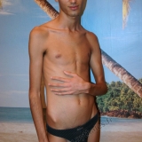 en studio avec un décor de palmiers, un parasol avant la vraie plage