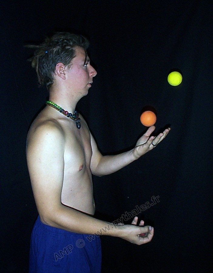 En intérieur avec son chien ou jonglant et changeant de tenue