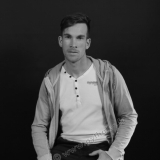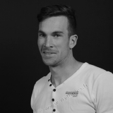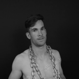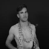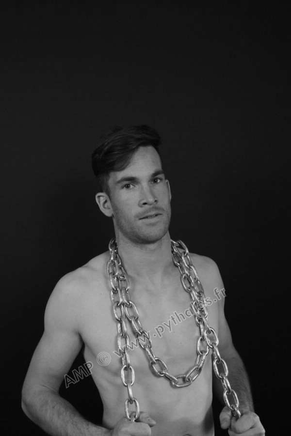 Noir et blanc : Fond noir, tabouret et grosse chaine