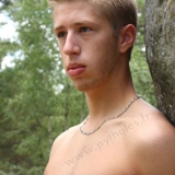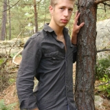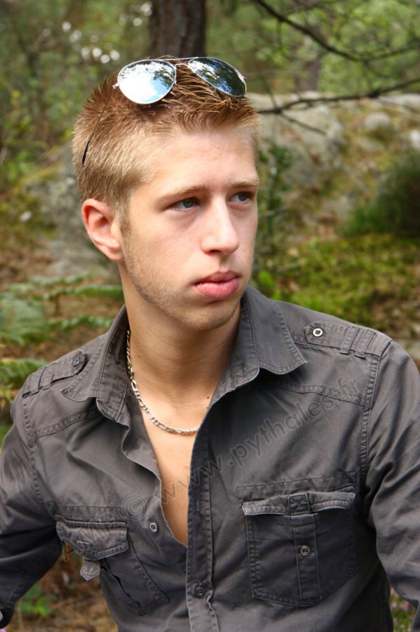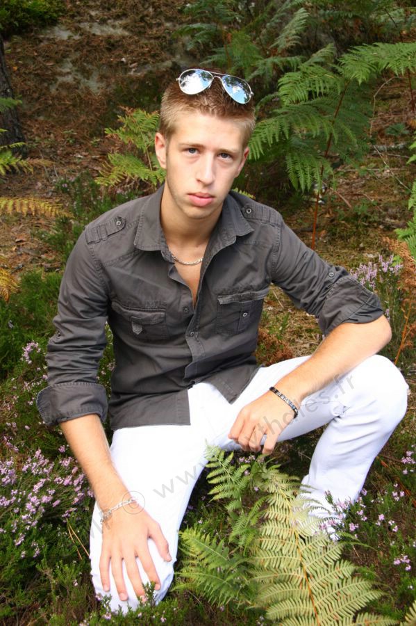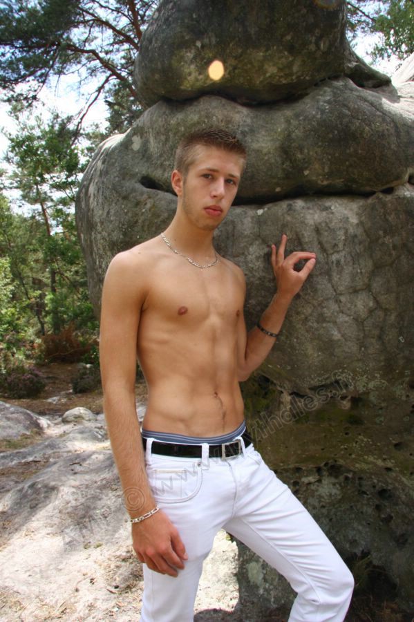 En pantalon blanc parmi les rochers de la forêt de Fontainebleau