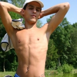 En bordure d'un petit étang, puis sous des arbres près de la rivière