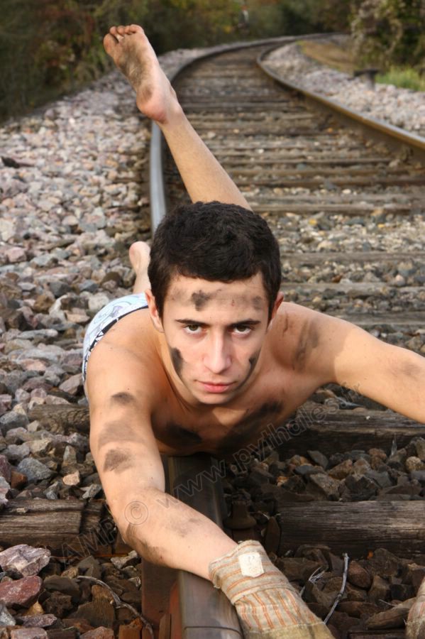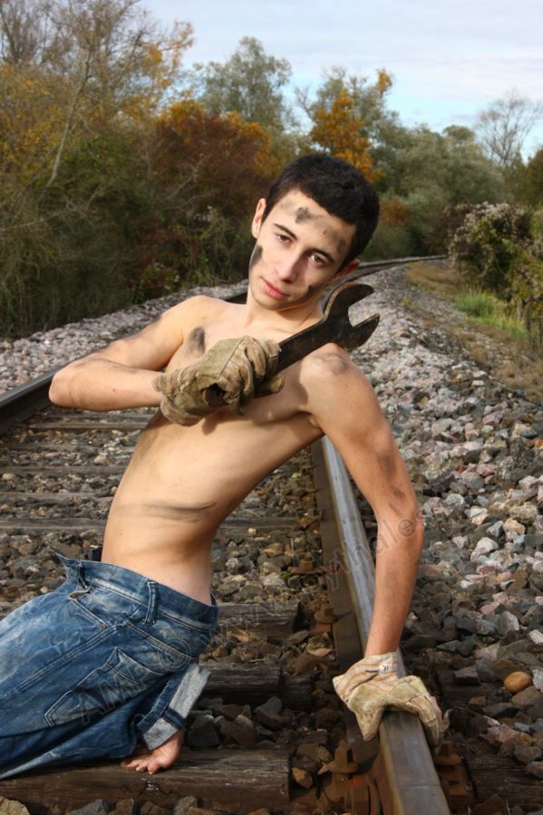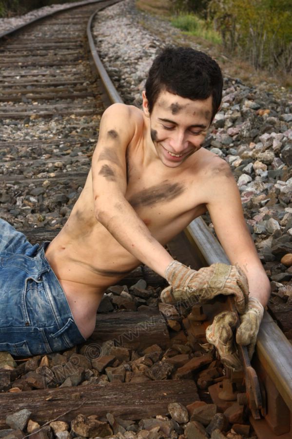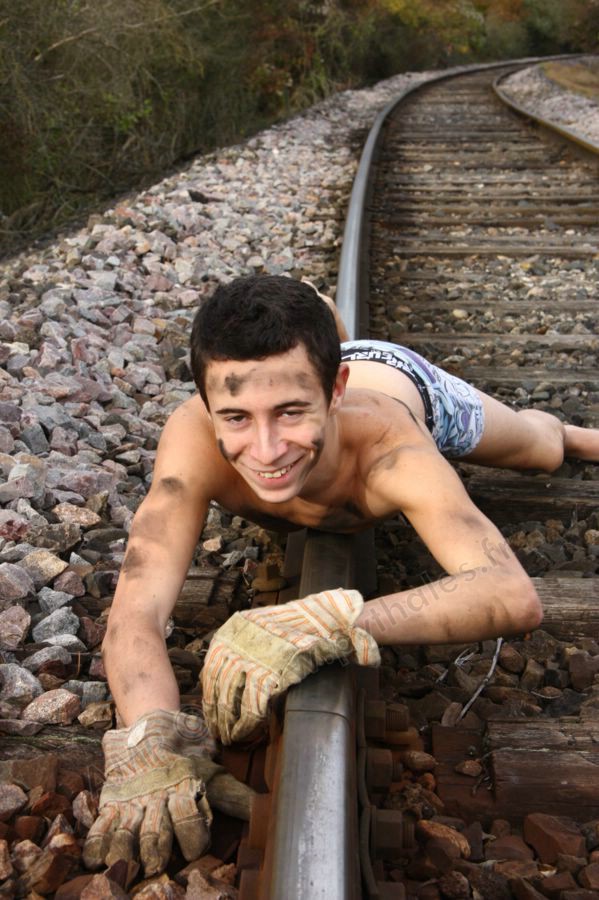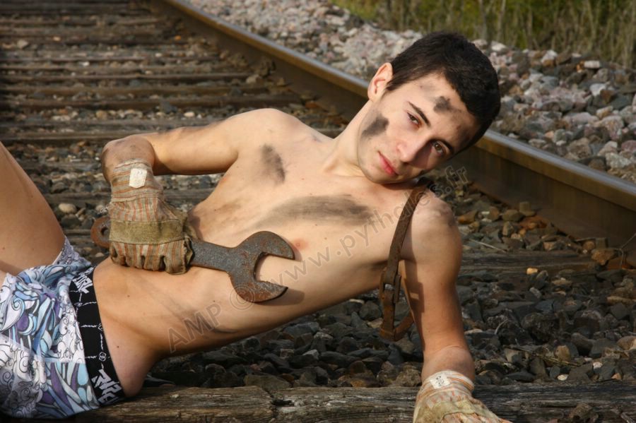 mécanicien sur la voie de chemin de fer