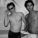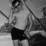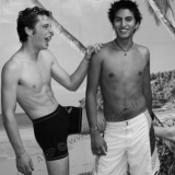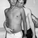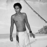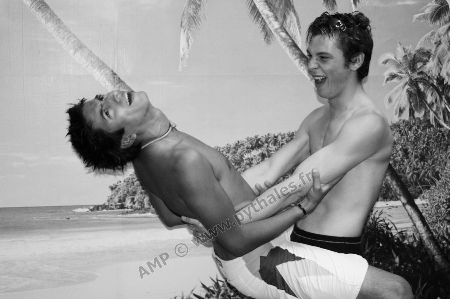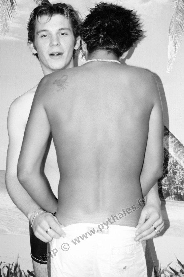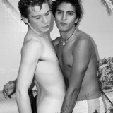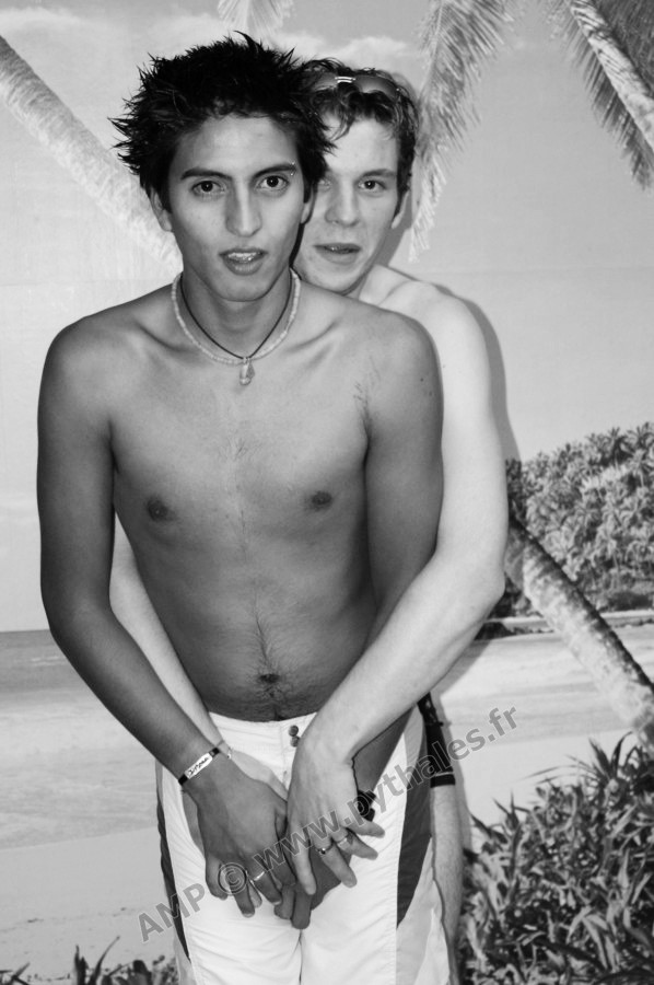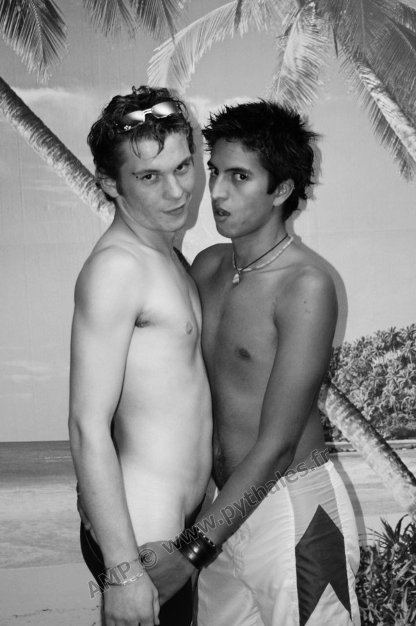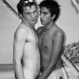 en Noir et Blanc avec un décor de palmiers et une complicité de jeu pour les deux modèles
