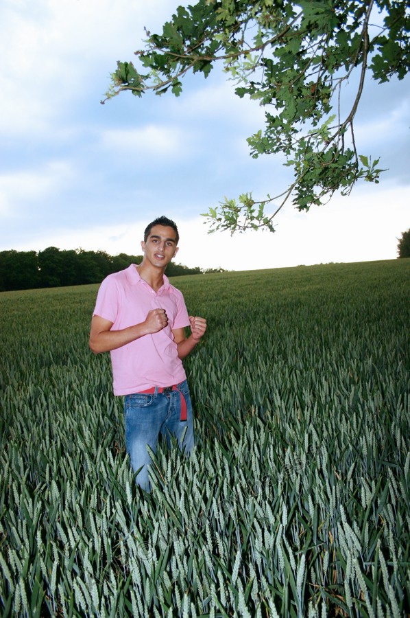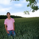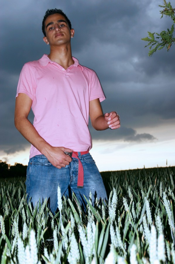A la fin d'une journée très chaude, les nuages noirs au dessus du champ de mais avant l'orage et la pluie (des gouttes sur l'objectif à la fin)