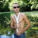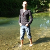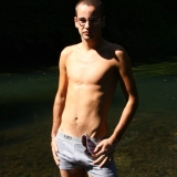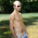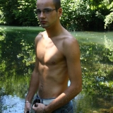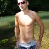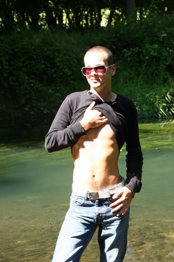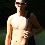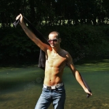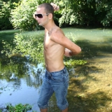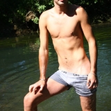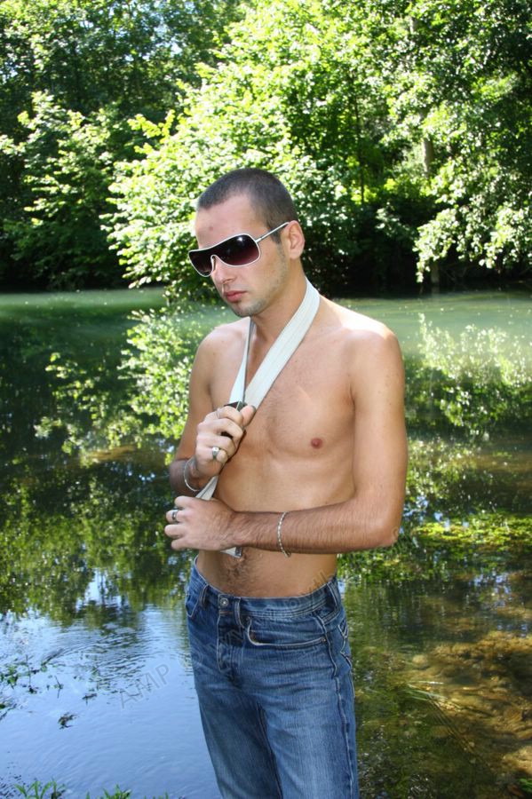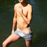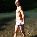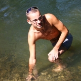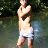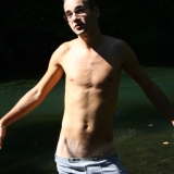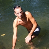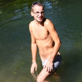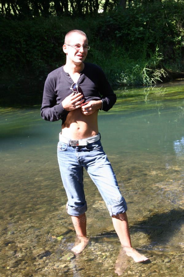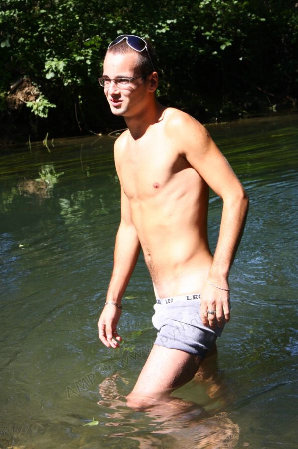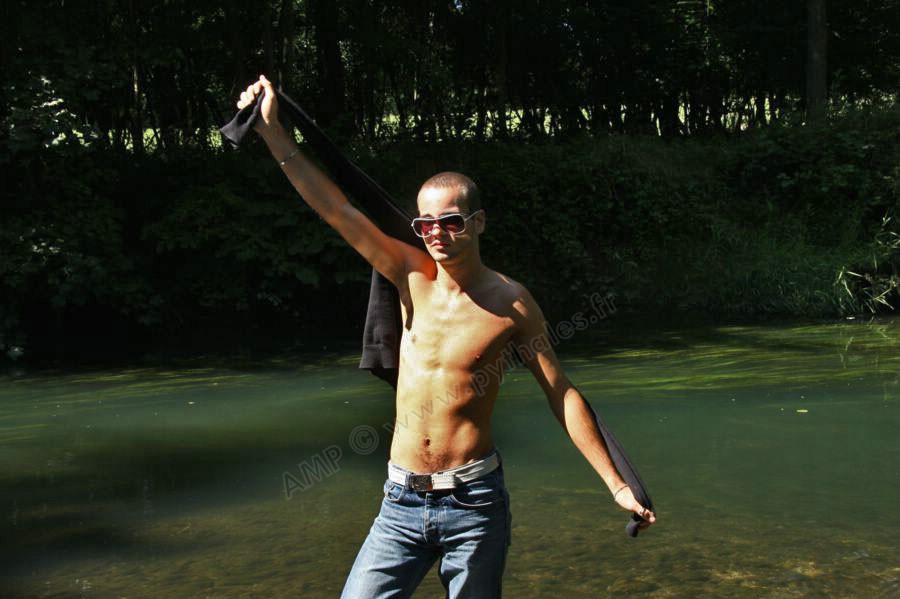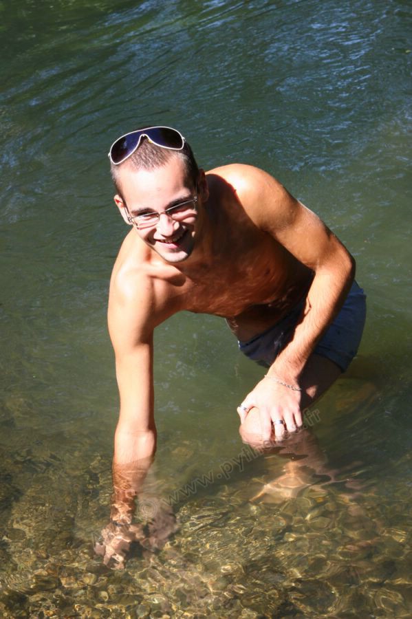Dans l'eau de la rivière par un temps très chaud