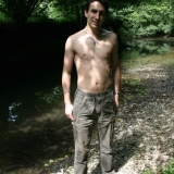 Au bord d'une rivière, puis dans l'eau