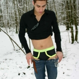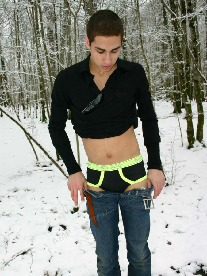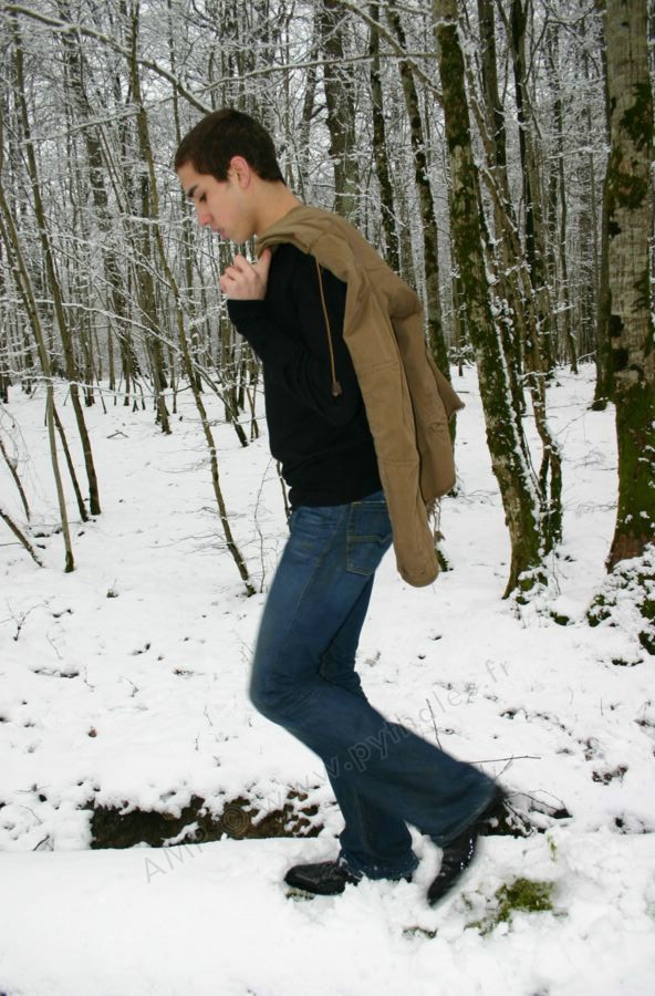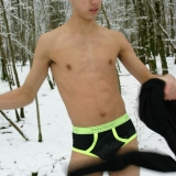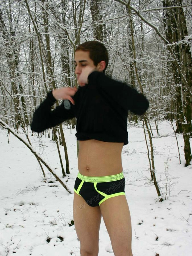 En boxer, dans la forêt et par temps de neige: il faut oser le faire