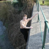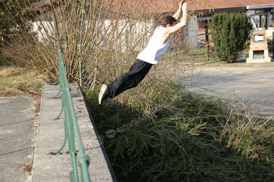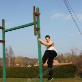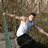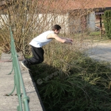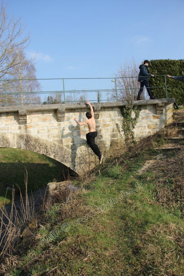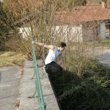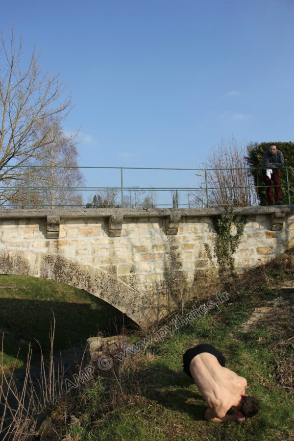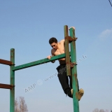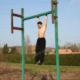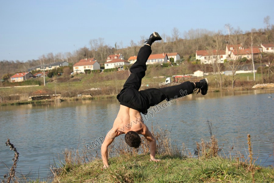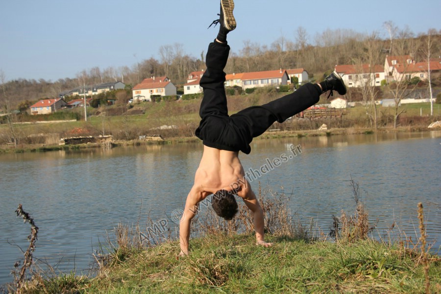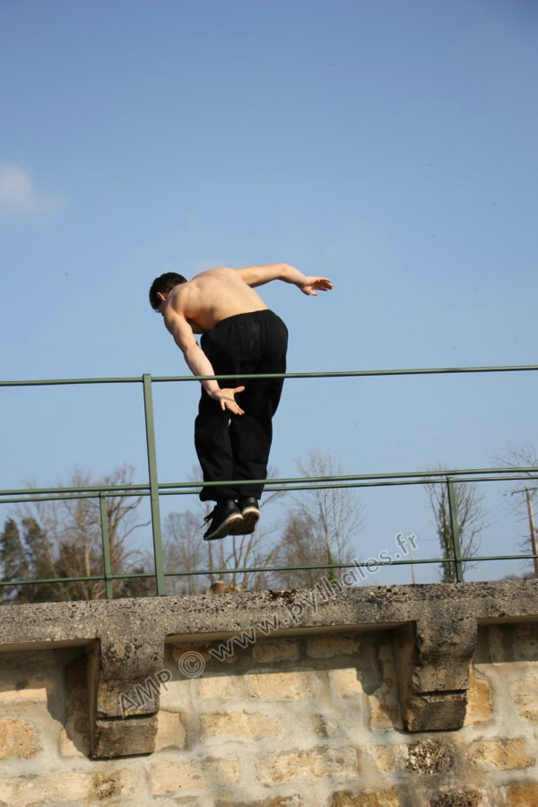 en équilibre sur des objets qu'il trouve (sport Street Work out)
