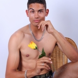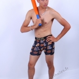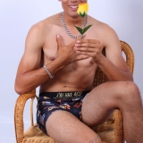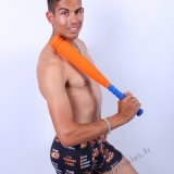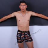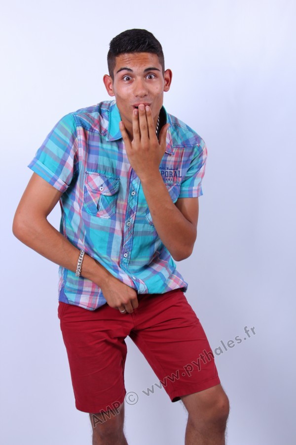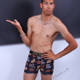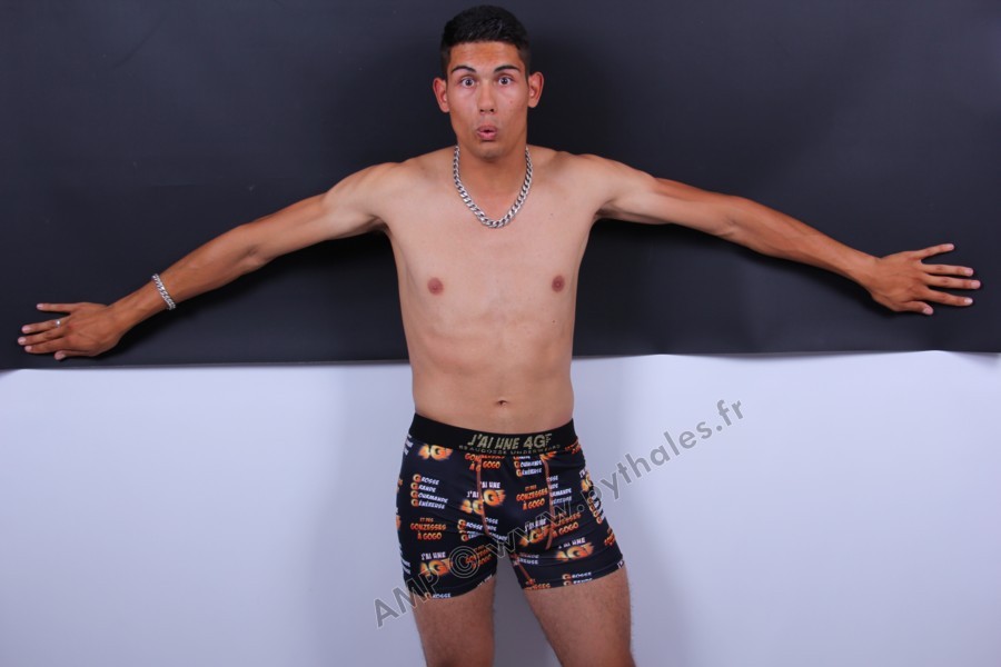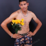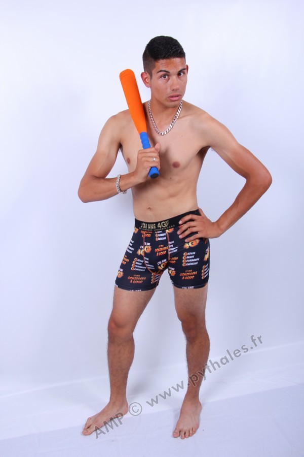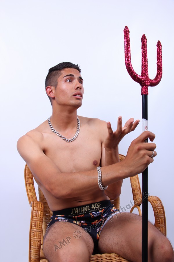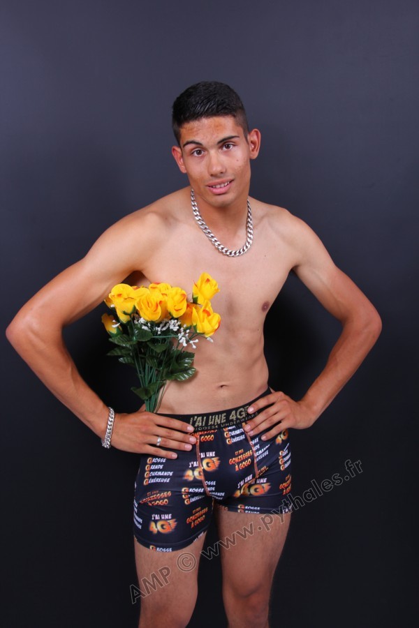 En studio sur fond blanc, boxer 4G, fauteuil, trident, roses