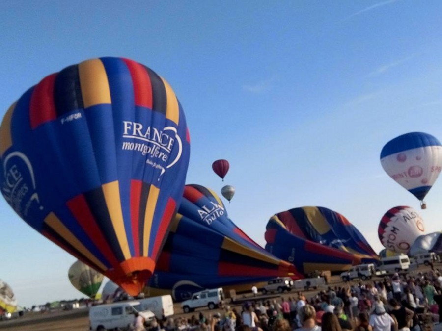 Mondial Airt Ballon (Montgolfières) à CHAMBLEY (54) puis dans un champ de blé, près de tags et dans le temple de l'amour d'un parc en ville