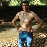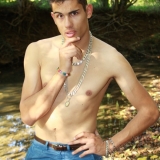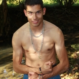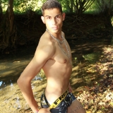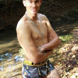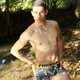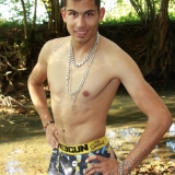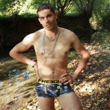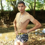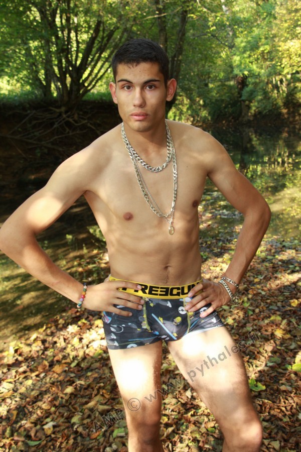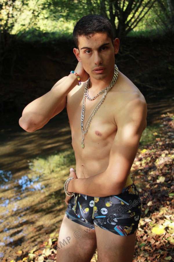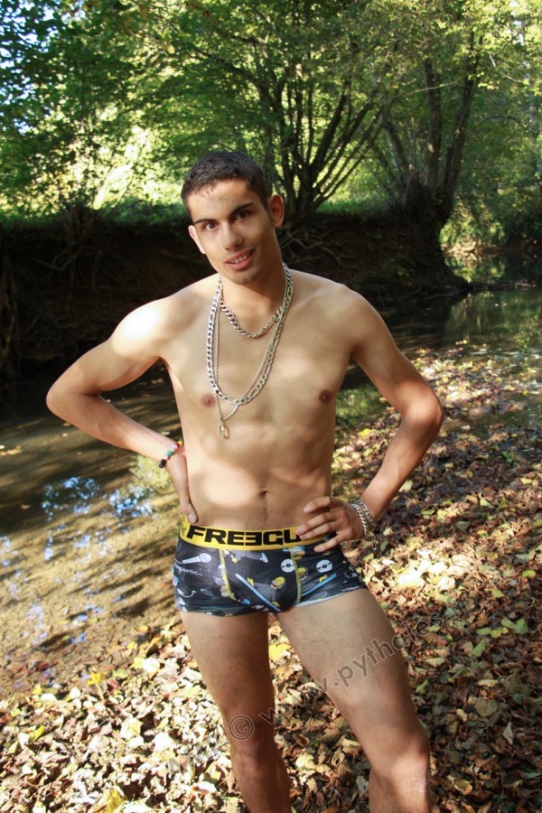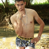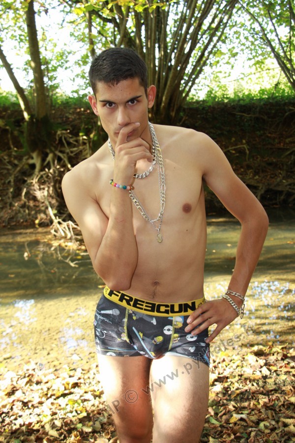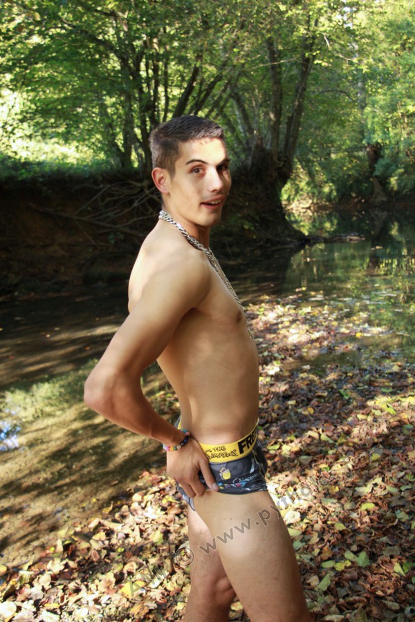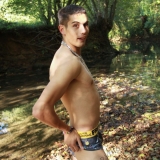 Dans le lit de la rivière en tenue de baignade